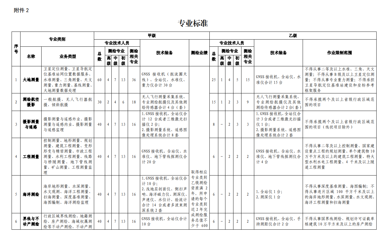 取得乙級測繪資質的測繪單位應在專業標準規定的作業限制范圍內從事測繪活動,甲級測繪資質在所取得的專業類別內無作業范圍限制。
